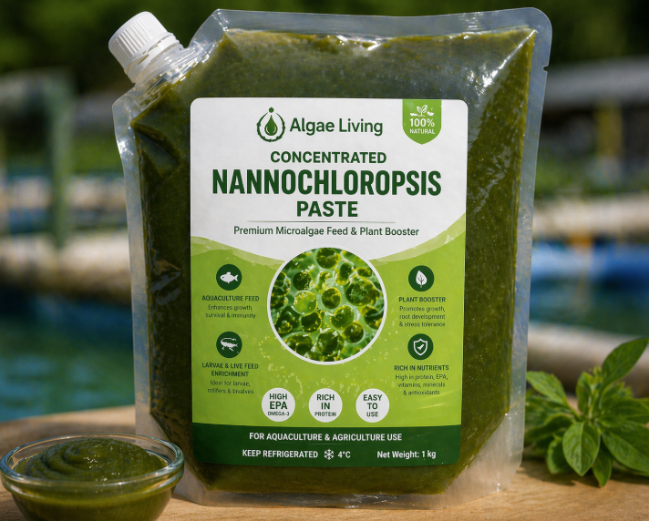 Concentrated Nanno is a highly concentrated paste, fresh microalgae feed made from the marine species Nannochloropsis. It is widely used in aquaculture as a natural, nutrient rich food source for early stage aquatic organisms such as fish larvae, shrimp, and bivalves.This paste form preserves the integrity of the algal cells allowing it to retain essential nutrients that are often reduced during drying processes. As a result, Concentrated Nanno delivers high levels of protein and essential fatty acids particularly Eicosapentaenoic acid (EPA) also as well as vitamins, minerals, and pigments that are critical for healthy growth and development.